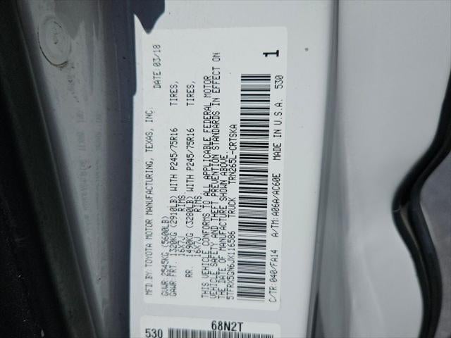 ABS brakes, Active Cruise Control, Electronic Stability Control, Illuminated entry, Low tire pressure warning, Traction control, 16 x 7J+30 Style Steel Disc Wheels, 6 Speakers, Air Conditioning, AM/FM radio, Anti-whiplash front head restraints, Auto High-beam Headlights, Axle Ratio: 4.30, Brake assist, Bumpers: body-color, CD player, Driver door bin, Dual front impact airbags, Dual front side impact airbags, Exterior Parking Camera Rear, Fabric Seat Trim (FB), Front anti-roll bar, Front Bucket Seats, Front Center Armrest, Front reading lights, Front wheel independent suspension, Knee airbag, Occupant sensing airbag, Outside temperature display, Overhead airbag, Overhead console, Passenger cancellable airbag, Passenger door bin, Power door mirrors, Power steering, Power windows, Radio: Entune AM/FM/CD, Rear step bumper, Speed control, Speed-sensing steering, Steering wheel mounted audio controls, Tachometer, Telescoping steering wheel, and Tilt steering wheel.