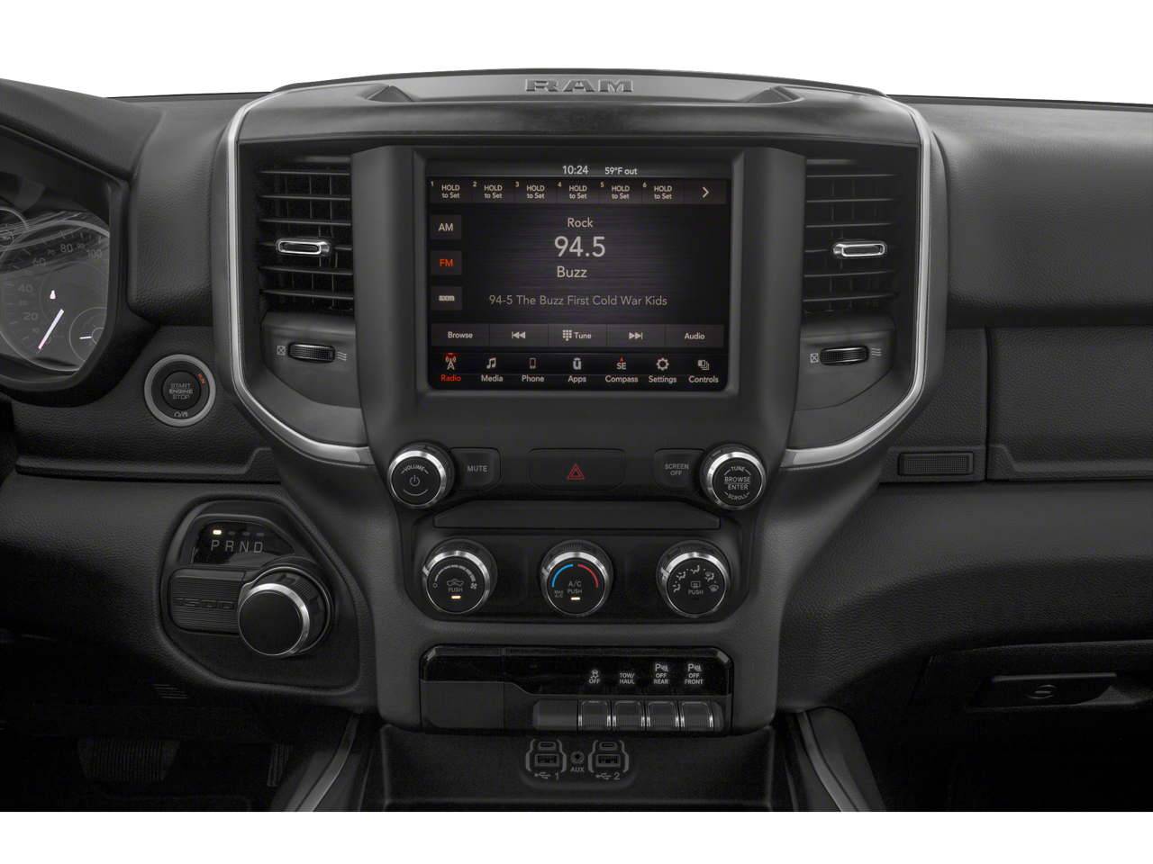 **WE DELIVER ANYWHERE**, 115V Auxiliary Power Outlet, 115V Auxiliary Rear Power Outlet, 3 Rear Seat Head Restraints, 3.21 Rear Axle Ratio, 4 Way Front Headrests, 4-Wheel Disc Brakes, 40/20/40 Split Bench Seat, 400W Inverter, 48V Belt Starter Generator, 6 Speakers, ABS brakes, Accent Color Premium Power Mirrors, Advanced Brake Assist, Air Conditioning, Air Conditioning ATC w/Dual Zone Control, Alloy wheels, AM/FM radio, Anti-Spin Differential Rear Axle, Auto-Dimming Exterior Driver Mirror, Auto-Dimming Rear-View Mirror, Big Horn Badge, Big Horn Level 2 Equipment Group, Black Exterior Mirrors, Black Exterior Truck Badging, Black Headlamp Bezels, Black Interior Accents, Black Painted Exterior Mirrors Caps, Black Premium Power Mirrors, Body Color Front Bumper, Body Color Rear Bumper w/Step Pads, Brake assist, Bucket Seats, Bumpers: chrome, Center Console Parts Module, Class IV Receiver Hitch, Cloth Bench Seat, Cluster 3.5 TFT Color Display, Cluster 7.0 TFT Color Display, Compass, Delay-off headlights, Deluxe Cloth Bucket Seats, Driver door bin, Dual Exhaust w/Black Tips, Dual front impact airbags, Dual front side impact airbags, Electronic Stability Control, Exterior Mirrors Courtesy Lamps, Exterior Mirrors w/Memory, Exterior Mirrors w/Supplemental Signals, Foam Bottle Insert (Door Trim Panel), For More Info, Call 800-643-2112, Front anti-roll bar, Front Center Armrest w/Storage, Front fog lights, Front reading lights, Front Seat Back Map Pockets, Front wheel independent suspension, Full Length Floor Console, Full Speed Forward Collision Warning Plus, Fully automatic headlights, Glove Box Lamp, GPS Antenna Input, Heated door mirrors, Heated Front Seats, Heated Steering Wheel, Illuminated entry, Integrated Voice Command w/Bluetooth®, Lane Keep Assist, Leather steering wheel, Level 1 Safety Group, Low tire pressure warning, Manual Adjust 4-Way Front Passenger Seat, Media Hub w/2 Charge Only USBs, MOPAR Front & Rear Rubber Floor Mats, Night Edition, Occupant sensing airbag, Outside temperature display, Overhead airbag, Overhead console, Panic alarm, ParkSense Front/Rear Park Assist w/Stop, ParkView Rear Back-Up Camera, Passenger door bin, Passenger vanity mirror, Pedestrian Emergency Braking, Power 4-Way Driver Lumbar Adjust, Power 8-Way Driver Seat, Power Adjustable Pedals, Power door mirrors, Power steering, Power Sunroof, Power windows, Power-Folding Mirrors, Quick Order Package 23Z Big Horn, Radio data system, Radio: Uconnect 3 w/5 Display, Radio: Uconnect 4 w/8.4 Display, Rear 60/40 Folding Seat, Rear anti-roll bar, Rear Dome w/On/Off Switch Lamp, Rear Power Sliding Window, Rear seat center armrest, Rear step bumper, Rear Window Defroster, Remote keyless entry, Remote Start System, Security Alarm, SiriusXM Radio Service, Speed control, Split folding rear seat, Steering wheel mounted audio controls, Sun Visors w/Illuminated Vanity Mirrors, Tachometer, Telescoping steering wheel, Tilt steering wheel, Traction control, Trip computer, Universal Garage Door Opener, Variably intermittent wipers, Voltmeter, Wheels: 18 x 8 Cast-Aluminum Painted, Wheels: 20 x 9.0 Premium Paint/Polished.