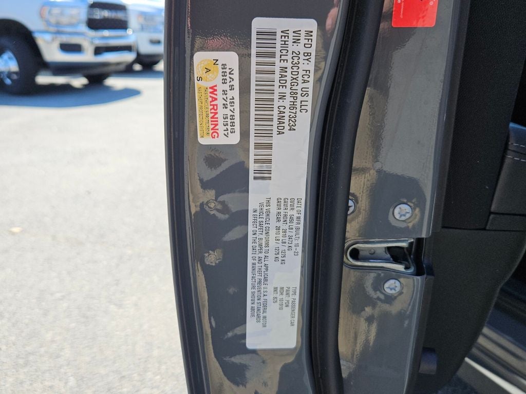 Quick Order Package 21V Scat Pack Widebody (All Speed Traction Control, Body Color Fender Flares, Brembo 6-Pot Fixed Front Caliper Brakes, Flat-Bottom Steering Wheel, Performance Shift Indicator, Wheels: 20 x 11 Carbon Black Aluminum, and Widebody Competition Suspension), Widebody Package, 1-Yr SiriusXM Guardian Trial, 2-Piece Shark Fin Antenna, 4-Wheel Disc Brakes, 4G LTE Wi-Fi Hot Spot, 6 Speakers, 8.4 Touchscreen Display, ABS brakes, Adaptive Damping Suspension (DISC), Air Conditioning, Alloy wheels, AM/FM radio: SiriusXM, Anti-whiplash front head restraints, Apple CarPlay, Apple CarPlay/Android Auto, Auto-dimming Rear-View mirror, Automatic temperature control, Brake assist, Bumpers: body-color, Cloth Performance Seats w/Heat, Compass, Delay-off headlights, Driver door bin, Driver vanity mirror, Dual front impact airbags, Dual front side impact airbags, Electronic Stability Control, Emergency communication system: SiriusXM Guardian, For Details, Visit DriveUconnect.com, Four wheel independent suspension, Front anti-roll bar, Front Bucket Seats, Front Center Armrest, Front dual zone A/C, Front fog lights, Front reading lights, Fully automatic headlights, Garage door transmitter: HomeLink, Google Android Auto, GPS Antenna Input, HD Radio, Heated door mirrors, Heated Front Seats, Heated front seats, Heated steering wheel, Illuminated entry, Integrated Center Stack Radio, Integrated Voice Command w/Bluetooth®, Knee airbag, Leather Shift Knob, Low tire pressure warning, Manufacturer's Statement of