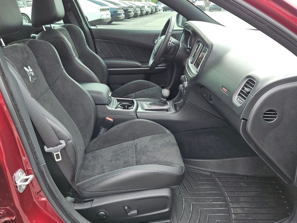 1-Yr SiriusXM Guardian Trial, 19 harman/kardon GreenEdge Speakers, 2-Piece Shark Fin Antenna, 4-Wheel Disc Brakes, 4G LTE Wi-Fi Hot Spot, 5-Year SiriusXM Traffic Service, 5-Year SiriusXM Travel Link Service, 6 Speakers, 8.4 Touchscreen Display, ABS brakes, Adaptive Cruise Control w/Stop, Adaptive Damping Suspension (DISC), Advanced Brake Assist, Air Conditioning, All Speed Traction Control, Alloy wheels, AM/FM radio: SiriusXM, Anti-whiplash front head restraints, Apple CarPlay, Apple CarPlay/Android Auto, Auto Adjust In Reverse Exterior Mirrors, Auto High Beam Headlamp Control, Auto-Dimming Exterior Driver Mirror, Auto-dimming Rear-View mirror, Automatic temperature control, Black-Edged Premium Floormats, Blind Spot & Cross Path Detection, Blind Spot Memory/Power/Heat Mirror, Brake assist, Brake Calipers - Red, Brembo 6-Pot Fixed Front Caliper Brakes, Bumpers: body-color, Cloth Performance Seats w/Heat, Compass, Compass Gauge, Delay-off headlights, Driver & Passenger Lower LED Lamps, Driver door bin, Driver vanity mirror, Dual front impact airbags, Dual front side impact airbags, Dynamics Package (DISC), Electronic Stability Control, Emergency communication system: SiriusXM Guardian, Exterior Mirrors Courtesy Lamps, Exterior Mirrors w/Heating Element, Flat-Bottom Steering Wheel, For Details, Visit DriveUconnect.com, Four wheel independent suspension, Front anti-roll bar, Front Bucket Seats, Front Center Armrest, Front dual zone A/C, Front fog lights, Front Overhead LED Lighting, Front reading lights, Full Speed FWD Collision Warn Plus, Fully automatic headlights, Garage door transmitter: HomeLink, Google Android Auto, GPS Antenna Input, GPS Navigation, harman/kardon Audio Group, harman/kardon GreenEdge Amp, HD Radio, Heated door mirrors, Heated Front Seats, Heated front seats, Heated steering wheel, Illuminated entry, Integrated Center Stack Radio, Integrated Voice Command w/Bluetooth®, Knee airbag, Lane Departure Warning Plus, Leather Shift Knob, Low tire pressure warning, Manufacturer's Statement of Origin, Media Hub (2 USB, AUX), Navigation & Travel Group, Occupant sensing airbag, Outside temperature display, Overhead airbag, Overhead console, Panic alarm, ParkView Rear Back-Up Camera, Passenger door bin, Passenger vanity mirror, Plus Group, Power 2-Way Driver Lumbar Adjust, Power 2-Way Passenger Lumbar Adjust, Power door mirrors, Power driver seat, Power Front Driver/Passenger Seats, Power steering, Power Sunroof, Power Tilt/Telescope Steering Column, Power windows, Premium-Stitched Dash Panel, Quick Order Package 21W Scat Pack, Radio: Uconnect 4C Nav w/8.4 Display, Radio: Uconnect 4C w/8.4 Display, Radio/Driver Seat/Mirrors Memory, Rain Sensitive Windshield Wipers, Rear anti-roll bar, Rear Armrest w/Cupholder Seat, Rear reading lights, Rear seat center armrest, Rear window defroster, Remote keyless entry, Scat Pack Logo Nappa/Alcantara Seat, Security system, SiriusXM Traffic Plus, SiriusXM Travel Link, Speed control, Speed-Sensitive Wipers, Split folding rear seat, Spoiler, Sport steering wheel, Steering wheel mounted audio controls, Surround Sound, Tachometer, Technology Group, Telescoping steering wheel, Tilt steering wheel, Traction control, Trip computer, USB Host Flip, Variably intermittent wipers, Ventilated Front Seats, Wheels: 20 x 9.5 Low-Gloss Black Knurled, Wheels: 20 x 9 Lo Gloss Granite Crystal.