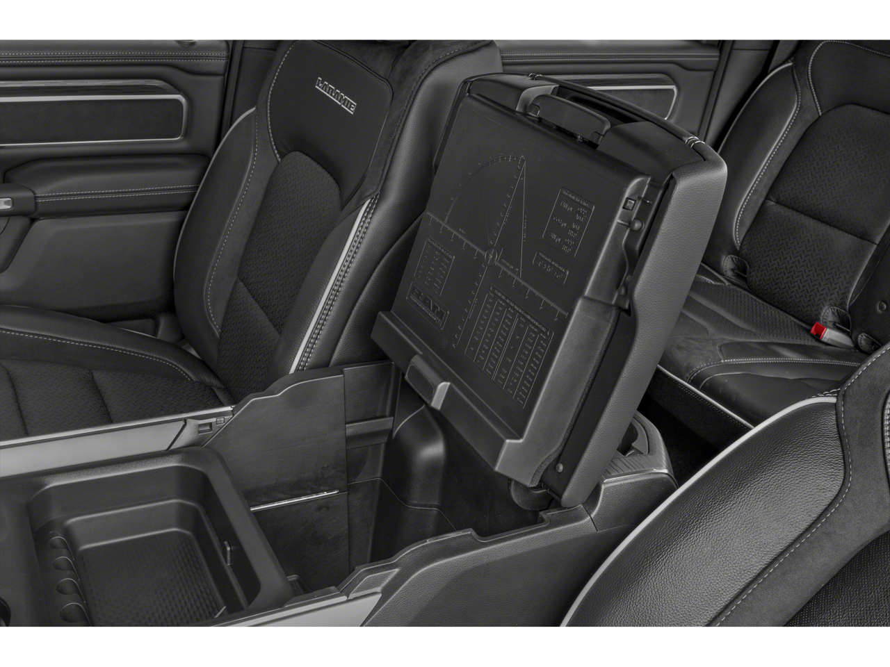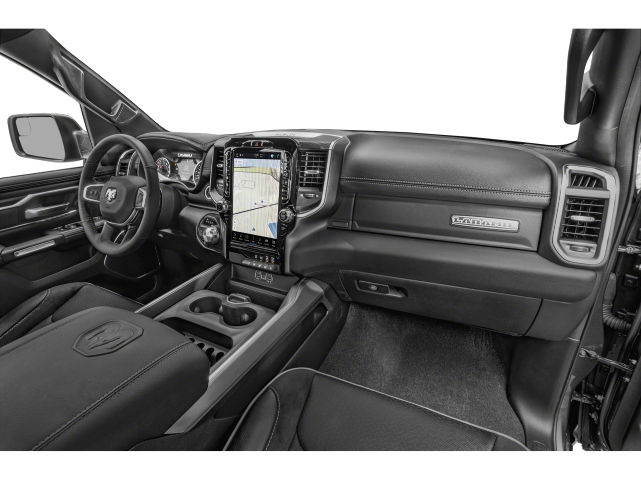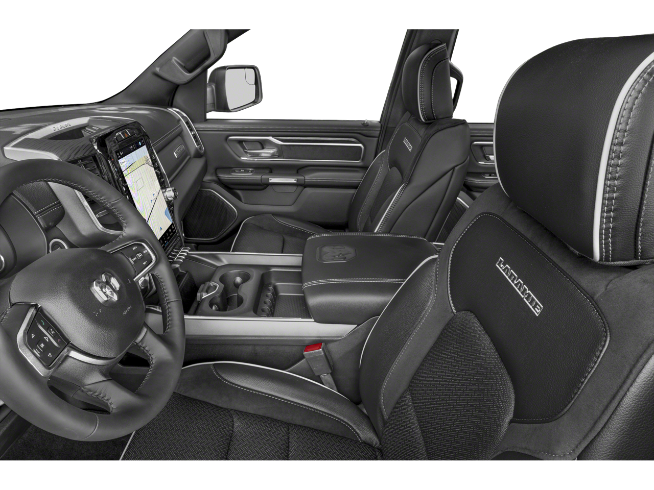 New Price! #1 Seat Foam Cushion, 10 Speakers, 12 Touchscreen Display, 2nd Row In Floor Storage Bins, 3 Rear Seat Head Restraints, 4 Way Front Headrests, 4-Wheel Disc Brakes, 48V Belt Starter Generator, 4G LTE Wi-Fi Hot Spot, ABS brakes, Adjustable pedals, Air Conditioning, Alloy wheels, AM/FM radio: SiriusXM with 360L, Anti-Spin Differential Rear Axle, Apple CarPlay, Apple CarPlay/Android Auto, Audio memory, Auto High Beam Headlamp Control, Auto-dimming door mirrors, Auto-Dimming Exterior Driver Mirror, Auto-dimming Rear-View mirror, Automatic temperature control, Bed Utility Group, Black Interior Accents, Blind Spot & Cross Path Detection, Body Color Exterior Mirrors, Body Color Front Bumper, Body Color Premium Power Mirrors, Body Color Rear Bumper w/Step Pads, Brake assist, Bumpers: chrome, Chrome Exterior Mirrors, Class IV Receiver Hitch, Compass, Connected Travel & Traffic Services, Connectivity - US/Canada, Convex Wide-Angle Exterior Mirror Insert, Delay-off headlights, Disassociated Touchscreen Display, Driver door bin, Driver Seat Memory, Driver vanity mirror, Dual front impact airbags, Dual front side impact airbags, Electric Shift-On-Demand Transfer Case, Electronic Stability Control, Exterior 115V AC Outlet, Exterior Mirrors Courtesy Lamps, Exterior Mirrors w/Heating Element, Exterior Mirrors w/Memory, Exterior Mirrors w/Supplemental Signals, Foam Bottle Insert (Door Trim Panel), For Details, Visit DriveUconnect.com, For More Info, Call 800-643-2112, Front anti-roll bar, Front Center Armrest w/Storage, Front Door Accent Lighting, Front dual zone A/C, Front fog lights, Front LED Fog Lamps, Front License Plate Bracket, Front reading lights, Front Seat Back Map Pockets, Front wheel independent suspension, Fully automatic headlights, Garage door transmitter, Global Telematics Box Module (TBM), Google Android Auto, GPS Antenna Input, GPS Navigation, Grille Surround 3 Body Color Tex 2 Black, harman/kardon 19 Speaker Premium Sound, HD Radio, Heated door mirrors, Heated Front Seats, Heated front seats, Heated Steering Wheel, Heated steering wheel, Illuminated entry, Integrated Center Stack Radio, Integrated Voice Command w/Bluetooth®, Laramie Level B Equipment Group, Leather steering wheel, Leather Trim 40/20/40 Bench Seat, LED Reflector Headlamps, Low tire pressure warning, Memory seat, MOPAR 4 Adjustable Cargo Tie-Down Hooks, MOPAR Front & Rear Rubber Floor Mats, MOPAR Spray In Bedliner, Navigation System, Occupant sensing airbag, Outside temperature display, Overhead airbag, Overhead console, Panic alarm, ParkSense Front/Rear Park Assist w/Stop (DISC), ParkView Rear Back-Up Camera, Passenger door bin, Passenger vanity mirror, Pedal memory, Pick-Up Box Lighting, Power 2-Way Driver Lumbar Adjust, Power 2-Way Passenger Lumbar Adjust, Power 8-Way Driver & Passenger Seats, Power door mirrors, Power driver seat, Power passenger seat, Power steering, Power windows, Power-Folding Mirrors, Quick Order Package 27H Laramie, Radio data system, Radio: Uconnect 5 Nav w/12.0 Display, Radio: Uconnect 5 Nav w/8.4 Display, Rain Sensitive Windshield Wipers, RAM Grille Badge - Chrome, RamBox Cargo Management System, Rear 60/40 Folding Seat, Rear anti-roll bar, Rear Door Accent Lighting, Rear Power Sliding Window, Rear seat center armrest, Rear step bumper, Rear Underseat Compartment Storage, Rear Window Defroster, Remote keyless entry, Remote Tailgate Release, Security system, SiriusXM Radio Service, SiriusXM w/360L, Speed control, Split folding rear seat, Sport Appearance Package, Sport Decal, Sport Performance Hood, Steering wheel mounted audio controls, Tachometer, Telescoping steering wheel, Tilt steering wheel, Traction control, Trip computer, Turn signal indicator mirrors, USB Host Flip, Variably intermittent wipers, Ventilated Front Seats, Ventilated front seats, Voltmeter, Wheels: 18 x 8 Aluminum Base Painted, Wheels: 20 x 9 Premium Painted w/Inserts.
