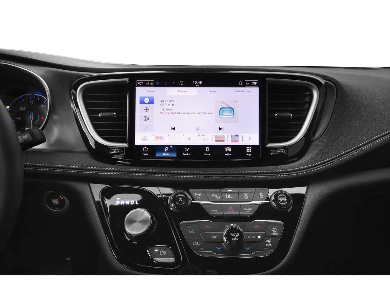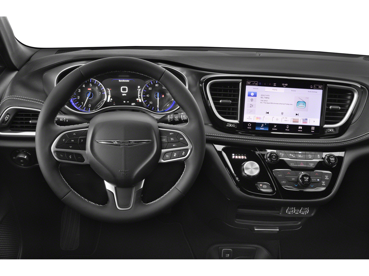 Step inside the Pacifica Select and be captivated by the spacious and meticulously crafted interior. The Caprice Leatherette Bucket Seats provide exceptional comfort, while the 10.1 Touchscreen Display and seamless integration of Apple CarPlay and Android Auto keep you connected and entertained. The Power Front/Fixed Rear Full Sunroof bathes the cabin in natural light, creating a bright and airy atmosphere.