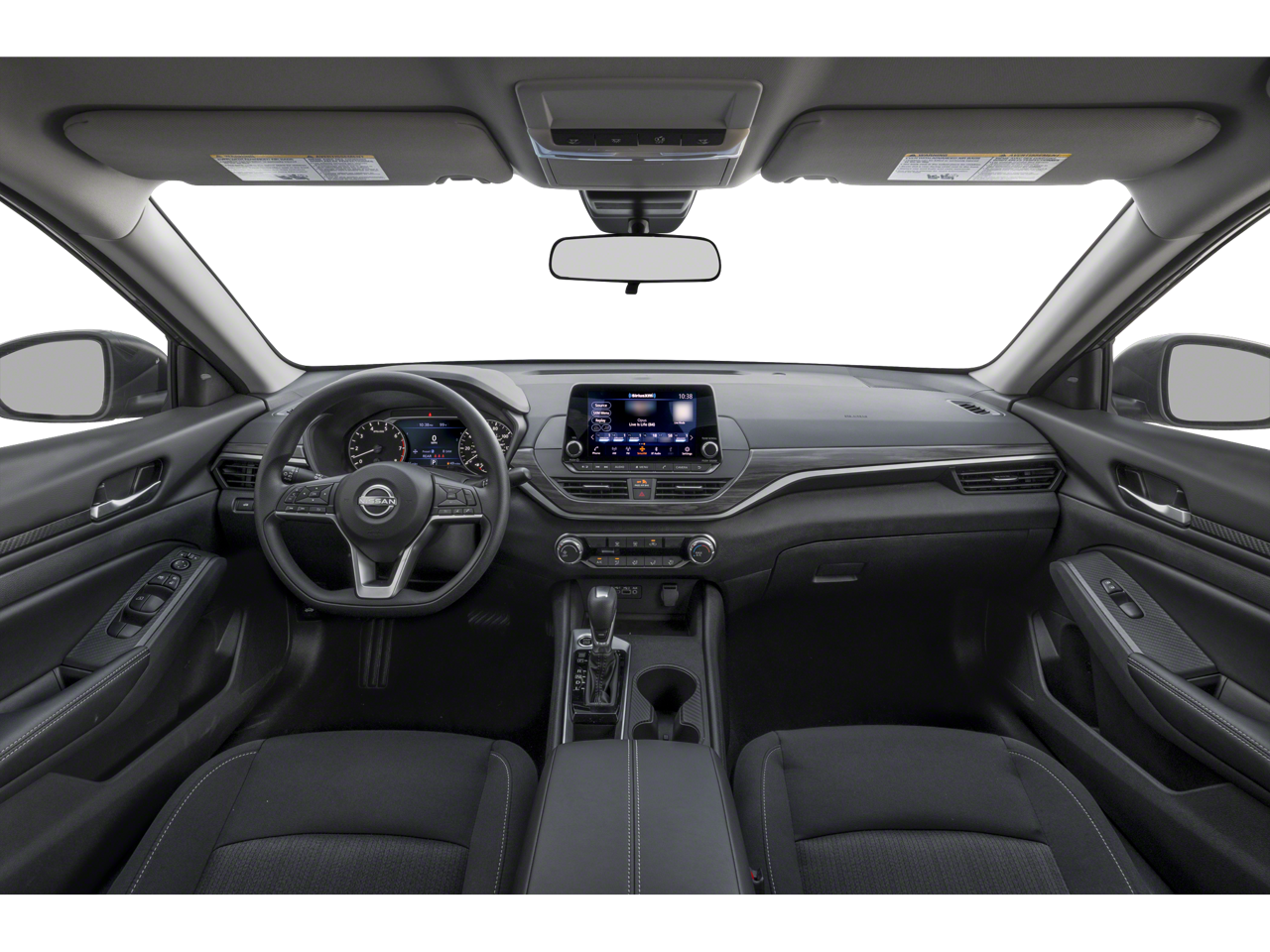 17 Machined Alloy Wheels, 4-Wheel Disc Brakes, 6 Speakers, ABS brakes, Air Conditioning, Alloy wheels, AM/FM radio: SiriusXM, Auto High-beam Headlights, Blind Spot Warning, Brake assist, Bumpers: body-color, Cloth Seat Trim, Delay-off headlights, Driver door bin, Driver vanity mirror, Dual front impact airbags, Dual front side impact airbags, Electronic Stability Control, Floor Mats/Trunk Mat/Hideaway Net, Four wheel independent suspension, Front anti-roll bar, Front Bucket Seats, Front Center Armrest, Front reading lights, Fully automatic headlights, Illuminated entry, Knee airbag, Low tire pressure warning, NissanConnect featuring Apple CarPlay and Android Auto, NissanConnect Services Powered by SiriusXM, Occupant sensing airbag, Outside temperature display, Overhead airbag, Overhead console, Panic alarm, Passenger door bin, Passenger vanity mirror, Power door mirrors, Power driver seat, Power steering, Power windows, Radio data system, Radio: AM/FM Audio System, Rear anti-roll bar, Rear Parking Sensors, Rear reading lights, Rear seat center armrest, Rear side impact airbag, Rear window defroster, Remote keyless entry, Security system, Speed control, Speed-sensing steering, Speed-Sensitive Wipers, Split folding rear seat, Steering wheel mounted audio controls, Tachometer, Telescoping steering wheel, Tilt steering wheel, Traction control, Trip computer, and Variably intermittent wipers.