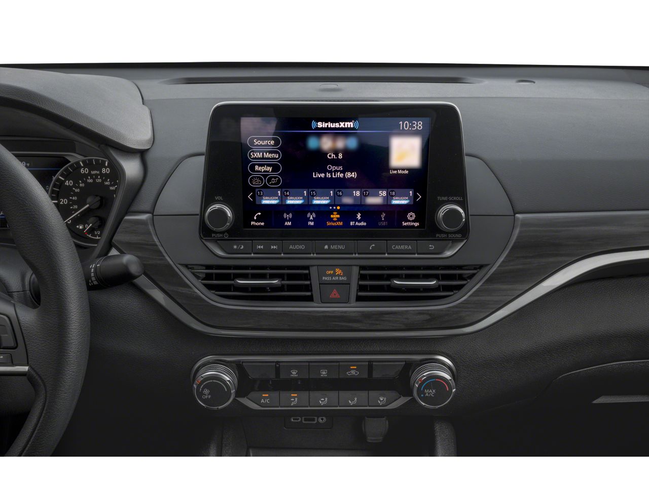 - Radio: AM/FM Audio System -inc: RDS, MP3 and aux-in, 6 speakers, NissanConnect 8" color display w/multi-touch control, Bluetooth® hands-free phone system, streaming audio via Bluetooth®, hands-free text messaging assistant, 2 front illuminated USB ports (1 type-A and 1 type-C) for compatible devices, Apple CarPlay, Android Auto, SiriusXM Radio, Siri Eyes Free, Google Assistant voice recognition and 2 rear illuminated USB ports (1 type-A and 1 type-C)