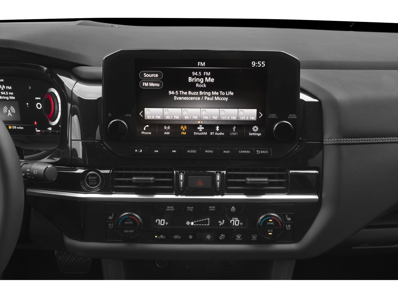 13 Speakers, 3rd row seats: bench, 4-Wheel Disc Brakes, ABS brakes, Air Conditioning, Alloy wheels, AM/FM radio: SiriusXM, Auto High-beam Headlights, Auto tilt-away steering wheel, Auto-dimming Rear-View mirror, Automatic temperature control, Bench Seat Carpeted Floor Mats (set of 4), Black Appearance Package, Black Grille, Black Liftgate Emblems, Black Splash Guards (set of 4), Bodyside moldings, Bose Premium Audio System, Brake assist, Bumpers: body-color, Cargo Area Protector, Cargo Net, Cargo Package, Climate Controlled Front Bucket Seats, Cross Bars, Delay-off headlights, Driver door bin, Driver vanity mirror, Dual front impact airbags, Dual front side impact airbags, Electronic Stability Control, Emergency communication system, Exterior Parking Camera Rear, First Aid, Four wheel independent suspension, Front anti-roll bar, Front Bucket Seats, Front Center Armrest, Front dual zone A/C, Front reading lights, Fully automatic headlights, Garage door transmitter: HomeLink, Heads-Up Display, Heated door mirrors, Heated front seats, Heated rear seats, Heated steering wheel, Illuminated entry, Knee airbag, Leather steering wheel, Low tire pressure warning, Memory seat, Navigation system: NissanConnect with Navigation and Services, Nissan USB Charging Cable Set, NissanConnect featuring Apple CarPlay and Android Auto, NissanConnect with Navigation and Services, Occupant sensing airbag, Outside temperature display, Overhead airbag, Overhead console, Panic alarm, Passenger door bin, Passenger vanity mirror, Power door mirrors, Power driver seat, Power Liftgate, Power moonroof, Power passenger seat, Power steering, Power windows, Radio data system, Radio: AM/FM Audio System, Rain sensing wipers, Rear air conditioning, Rear anti-roll bar, Rear reading lights, Rear seat center armrest, Rear side impact airbag, Rear window defroster, Rear window wiper, Reclining 3rd row seat, Remote keyless entry, Security system, Semi-Aniline Leather-Appointed Seating Surfaces, Speed control, Speed-sensing steering, Speed-Sensitive Wipers, Split folding rear seat, Spoiler, Steering wheel memory, Steering wheel mounted audio controls, Tachometer, Telescoping steering wheel, Tilt steering wheel, Traction control, Trip computer, Turn signal indicator mirrors, Variably intermittent wipers, Ventilated front seats, Wheels: 20 x 8J Machined Alloy.